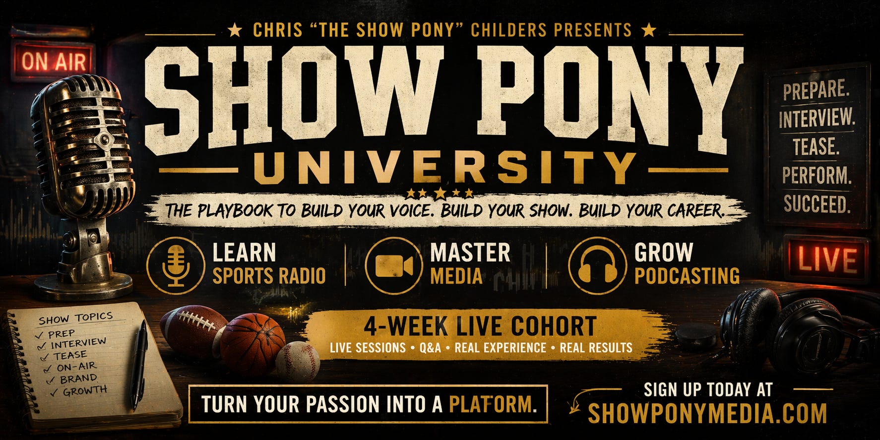 For the first time in 20+ years on national radio, I’m teaching exactly how I build, host, and sustain a show that coaches, ADs, and fans actually listen to.