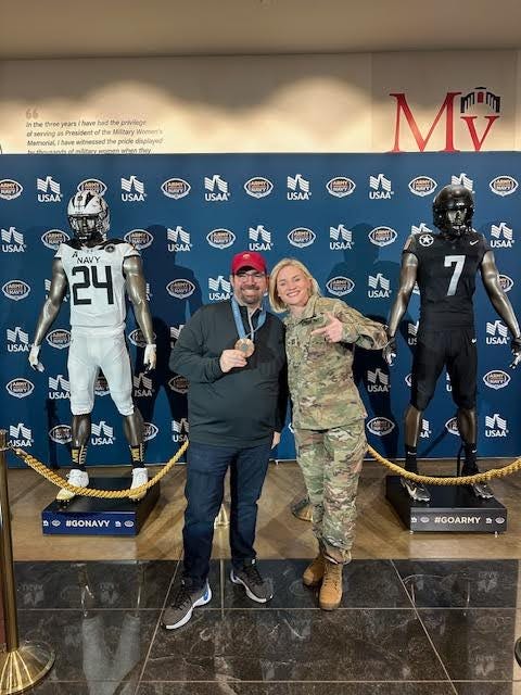Then came a full-circle experience. At Radio Row for the Army–Navy Game in Washington, D.C., we had the chance to sit down with Sammy Sullivan—a bronze medalist from that very team. She told us about her journey, her Army career, how she found rugby, and how it became part of her identity. And yeah… she let me wear the medal. That’ll hook you real quick.